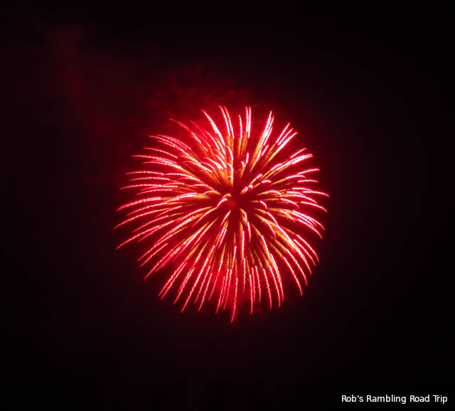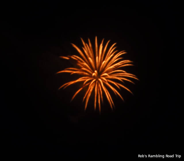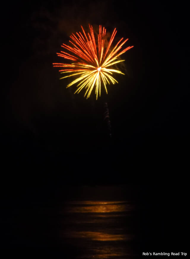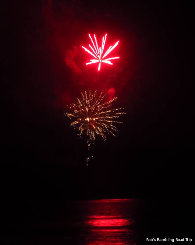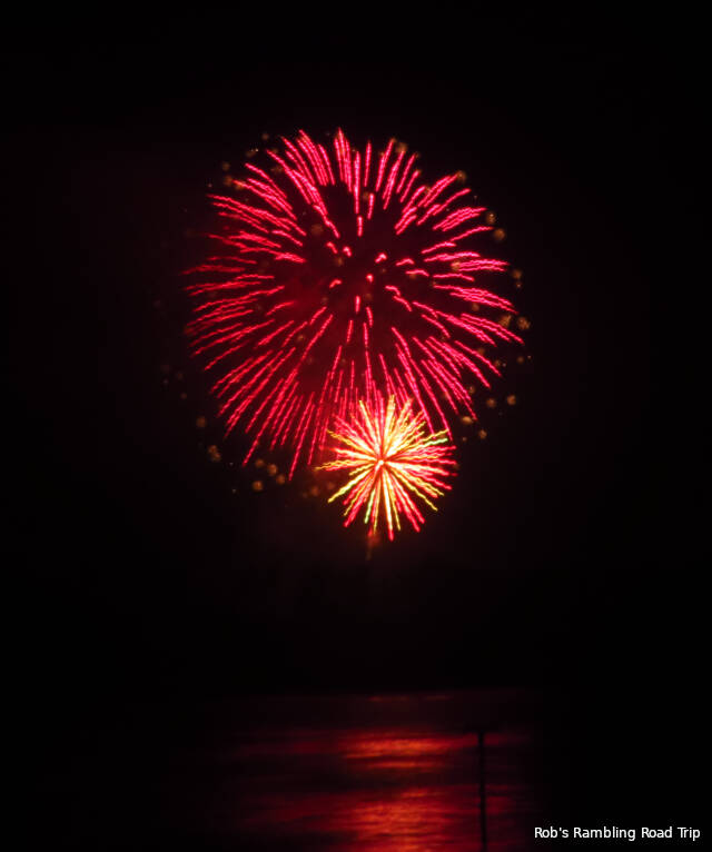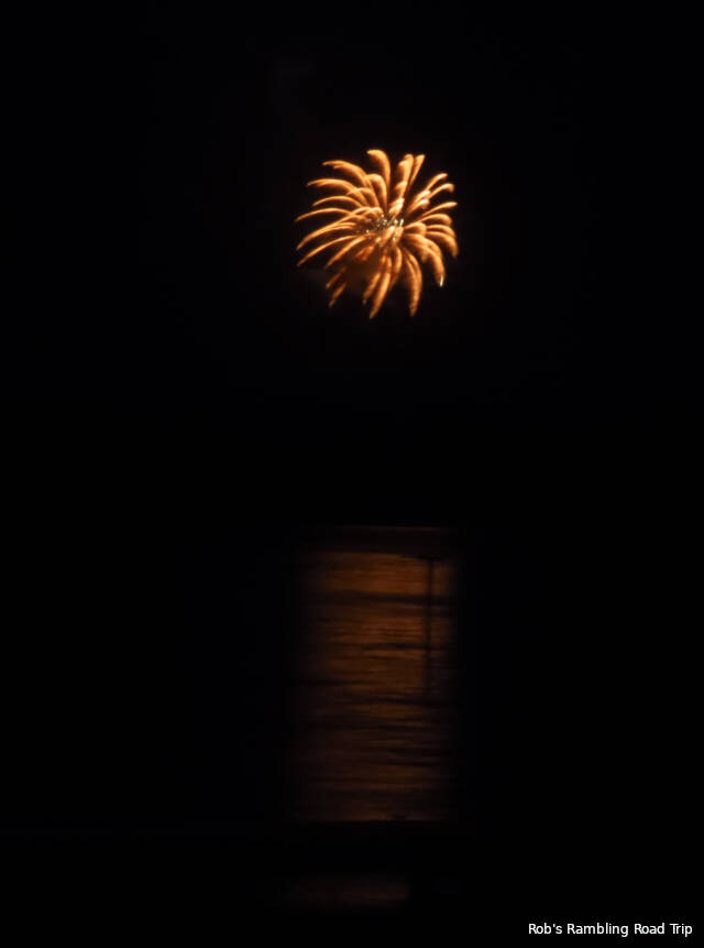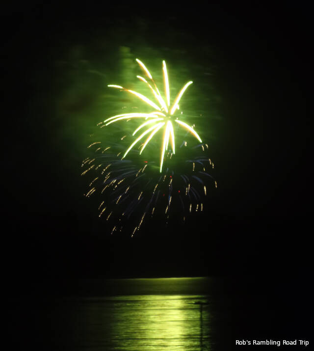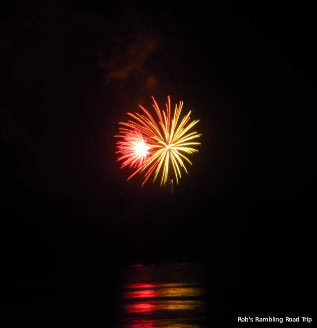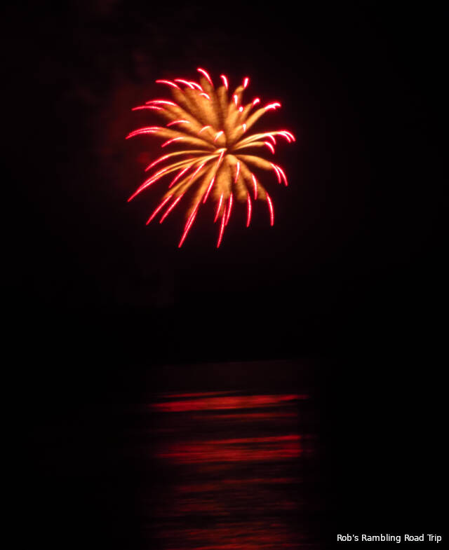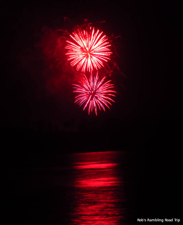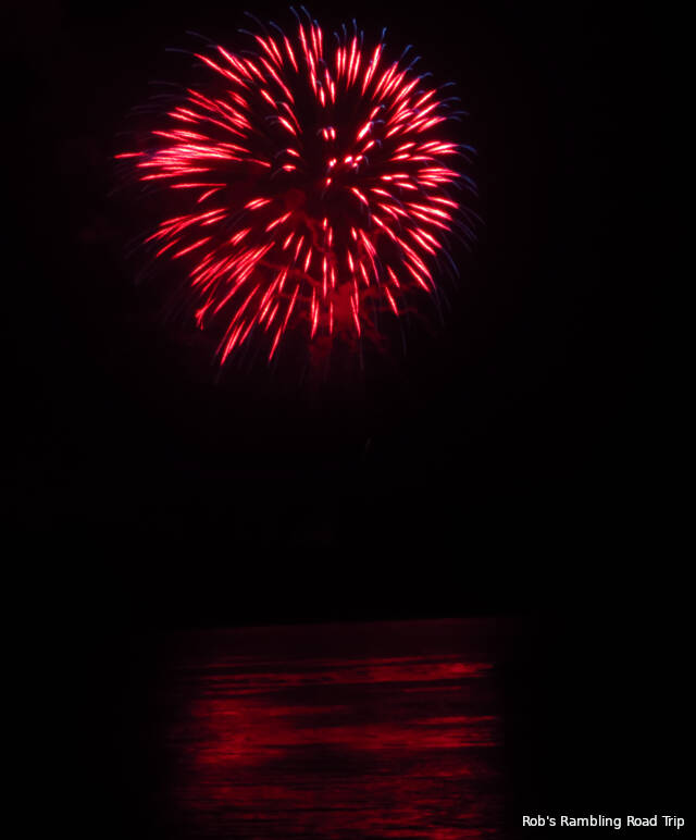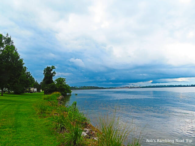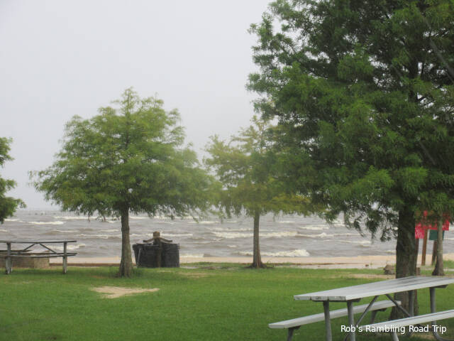 My second walk of the day was to the beach area during the early afternoon. I wanted to checkout how busy the area got. The parking lot was less than half full and most of the picnic goers were using the pavilions. Many of the standalone tables were in the middle of the soggy lawn areas. While I was at the beach area a very black cloud was on the northwestern horizon. I decided the prudent thing to do was head for my RV home. The first black cloud passed by to the north, but about an hour later darkness descended on the area followed shortly by heavy rain. Thunder and lightening were very close together. It took about three hours for the storms to clear the area.