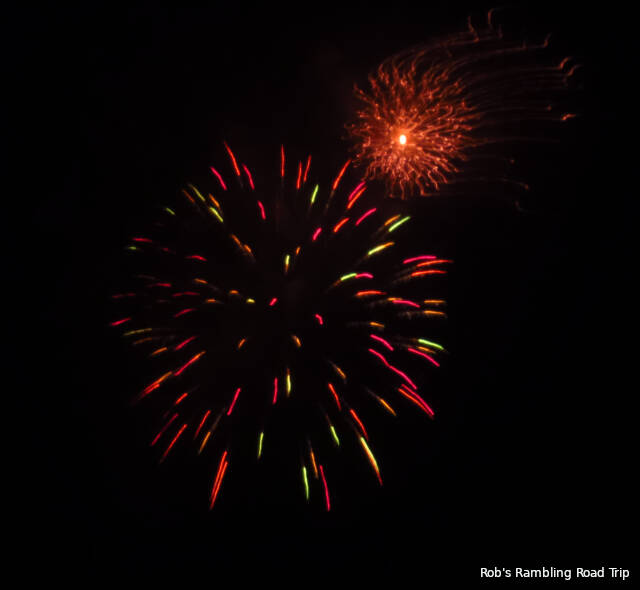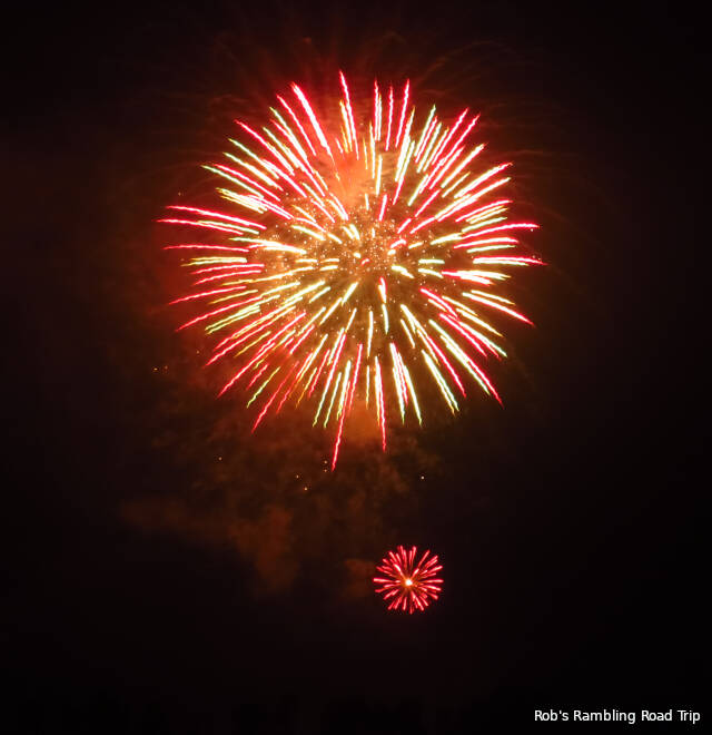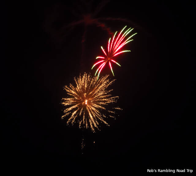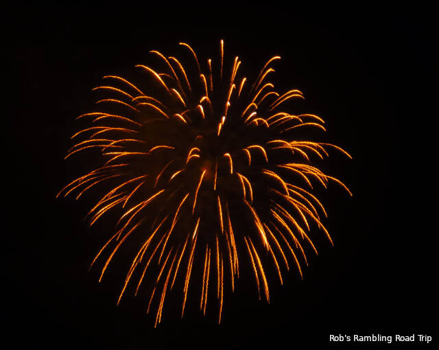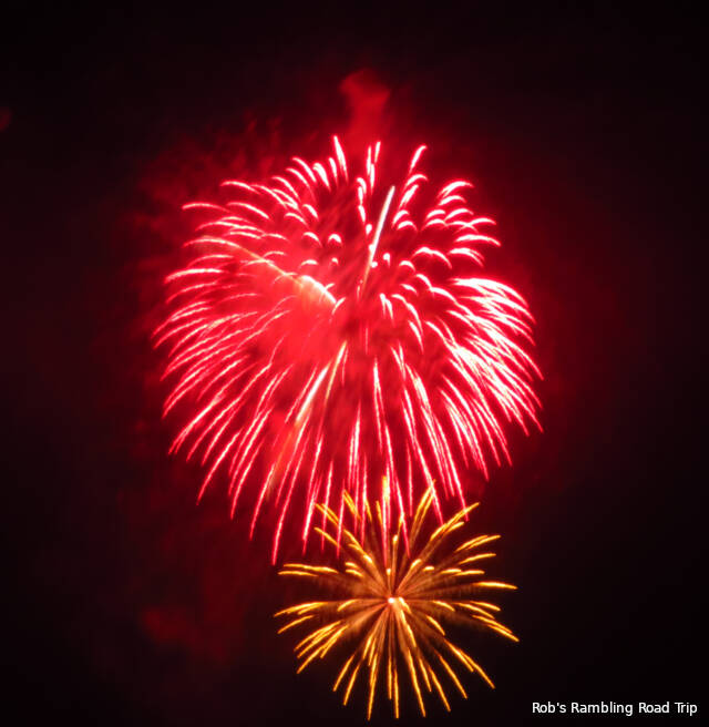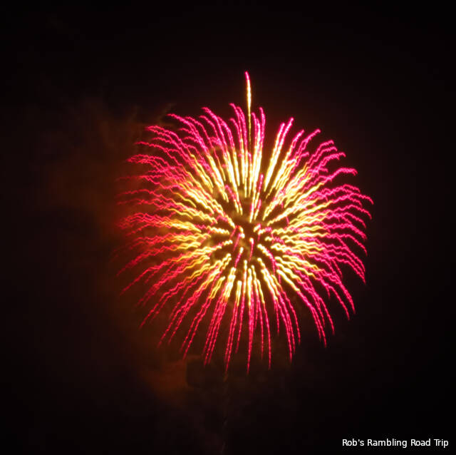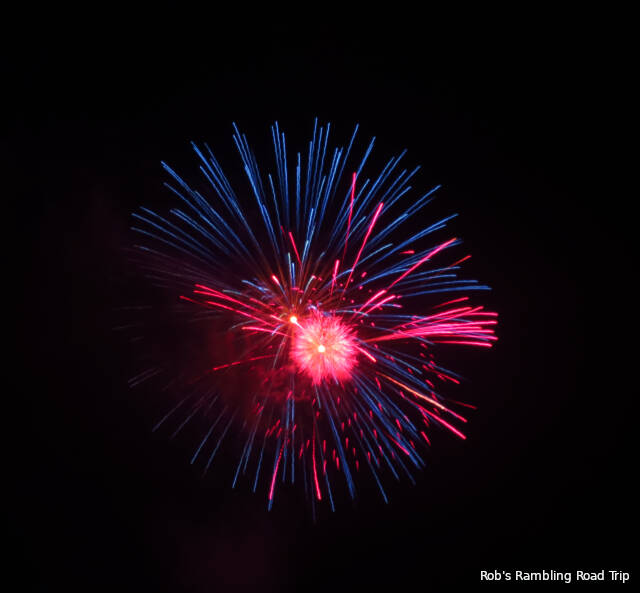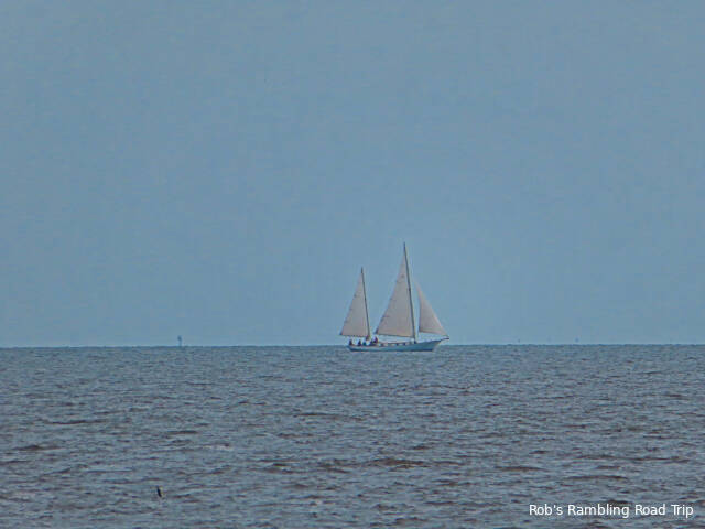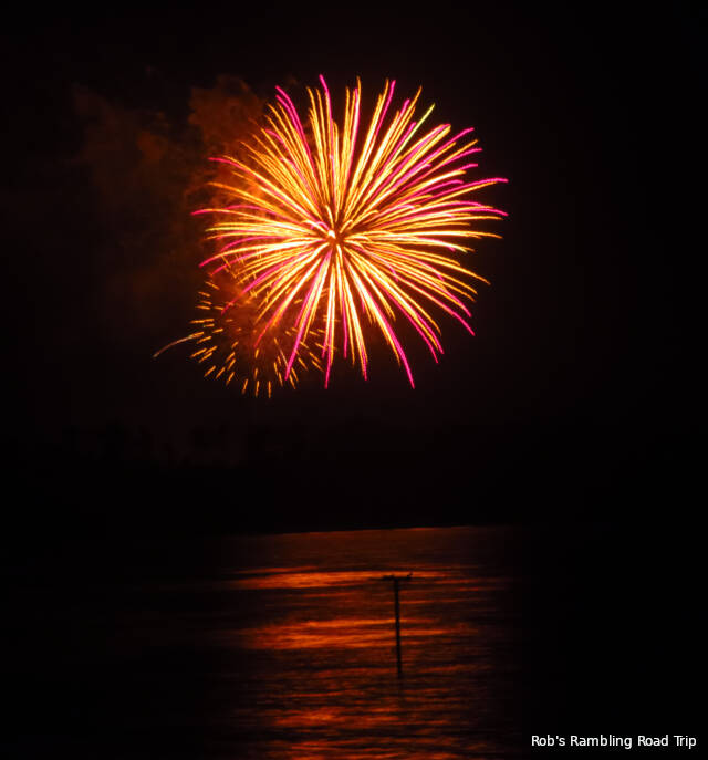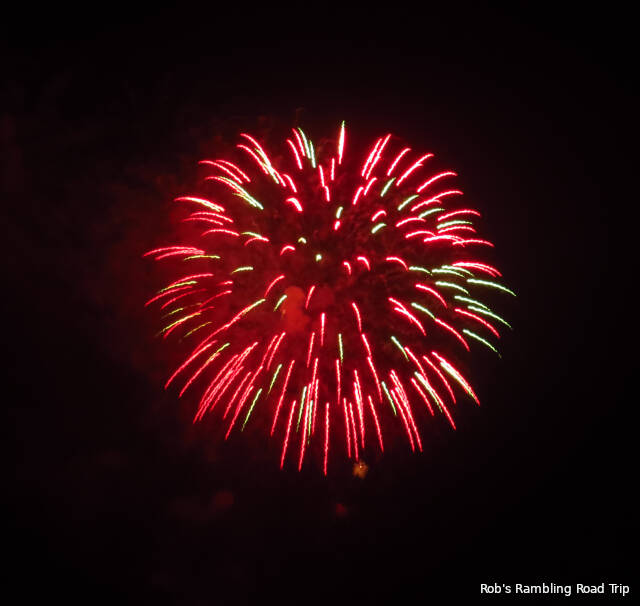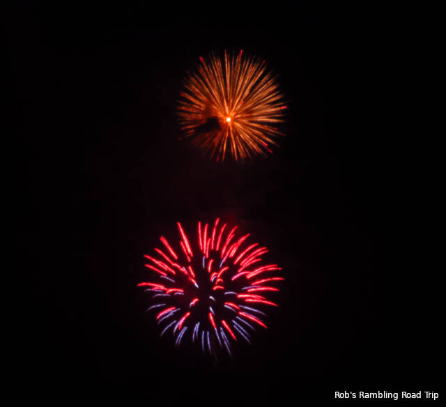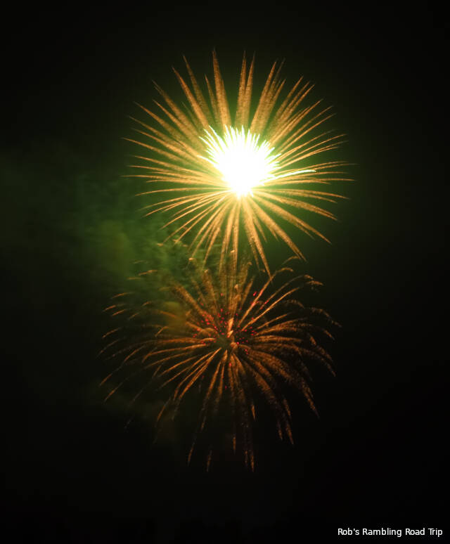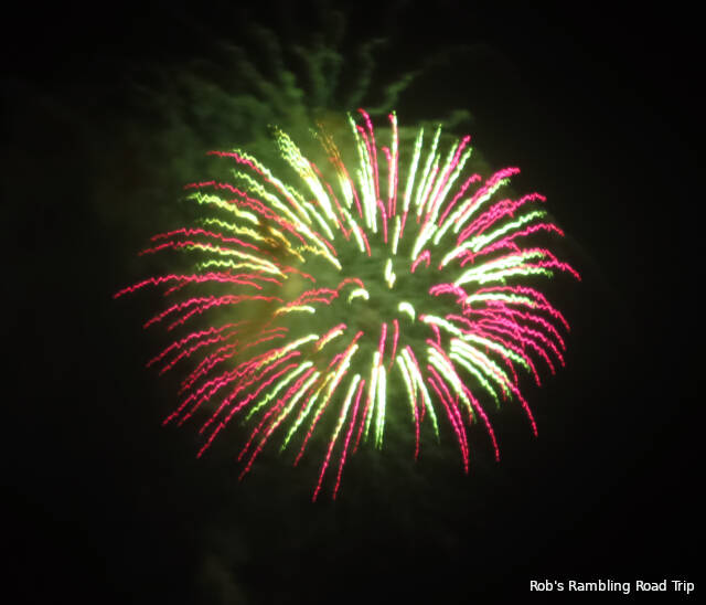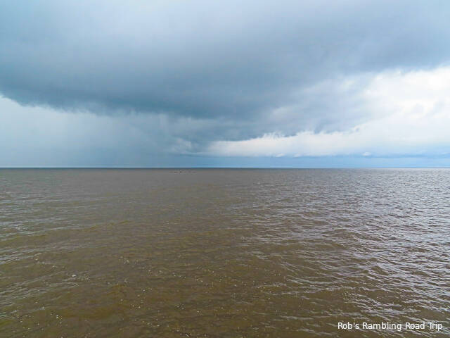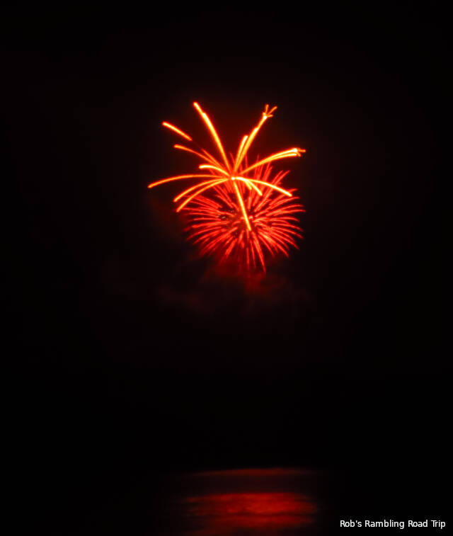 My second walk of the day was to the beach area during the early afternoon. I wanted to checkout how busy the area got. The parking lot was less than half full and most of the picnic goers were using the pavilions. Many of the standalone tables were in the middle of the soggy lawn areas. While I was at the beach area a very black cloud was on the northwestern horizon. I decided the prudent thing to do was head for my RV home. The first black cloud passed by to the north, but about an hour later darkness descended on the area followed shortly by heavy rain. Thunder and lightening were very close together. It took about three hours for the storms to clear the area.