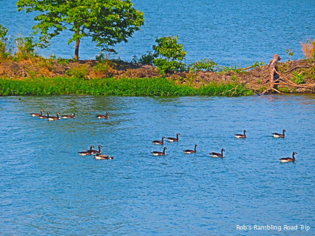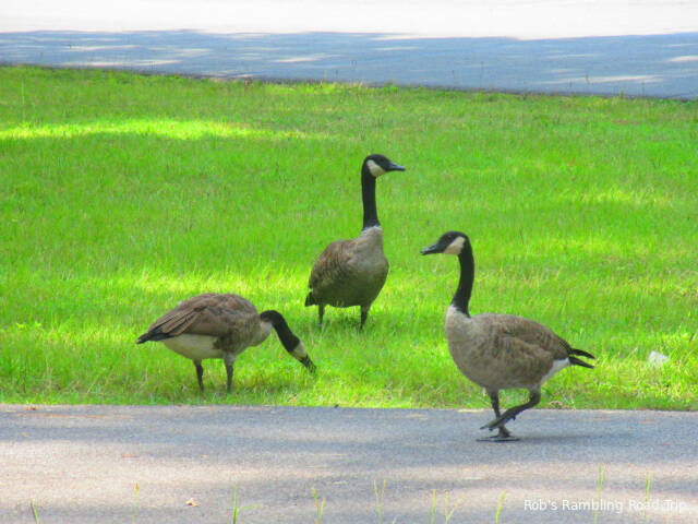 I arrived at the campground a little before 3PM. It took a while to get setup in the heat after passing the first hurdle of dealing with the welcoming committee. To get into my site I had to wait while the local population of Canada Geese got out of the way. They wouldn’t be hurried.