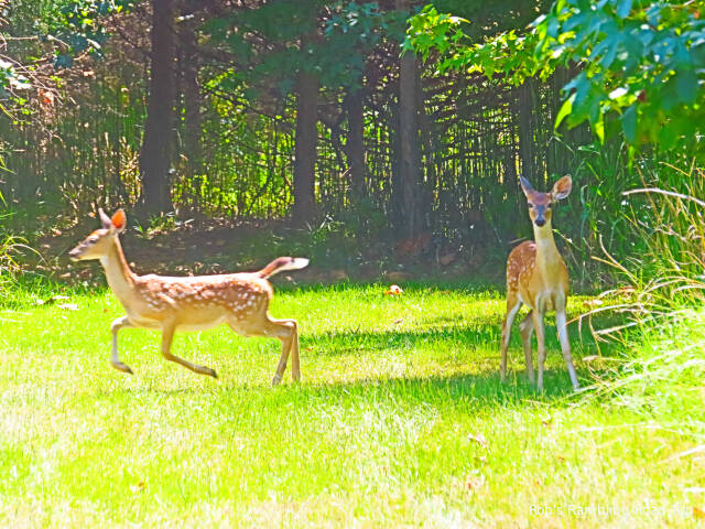 My walk was along one of the walking and horseback trails. It meanders along the side of an open field and through tree lined areas around a pond. I came upon two young deer. They still had their spots. I’m not sure if their mother was around or not, but I was careful to let them move away as they wanted while I took their pictures.
