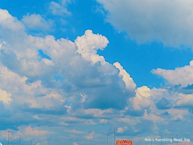 It was partly cloudy with a gentle breeze most of the day. The temperature peaked in the mid eighties. To the north, in the direction of Memphis, there was a lot more cloud cover. The TV news reported that there rain showers in the Memphis area. Just before sunset the sky to the north went from cloudy and gray to dark black. The weather that had lingered to the north all day was approaching this area. As I’m writing this blog entry it has been raining for about half an hour.