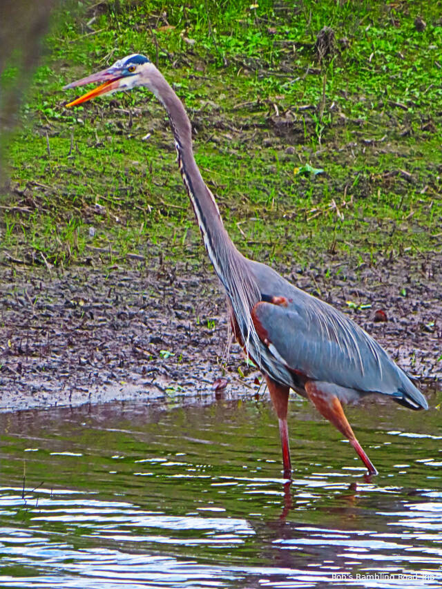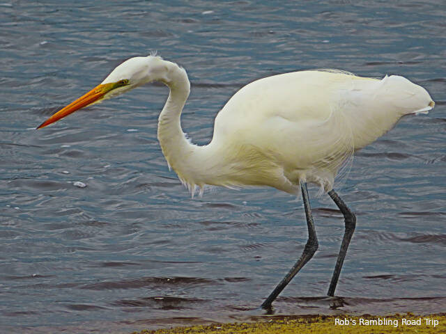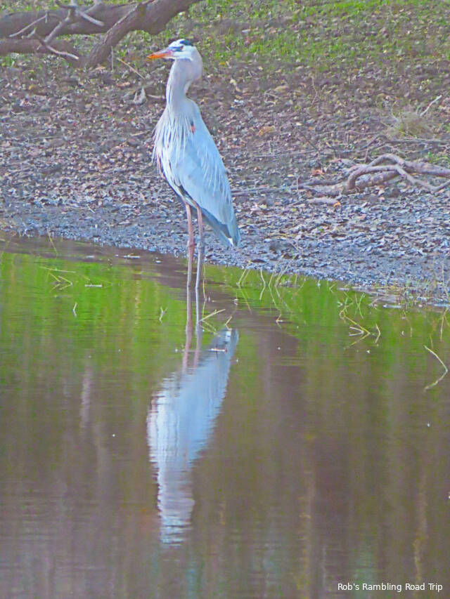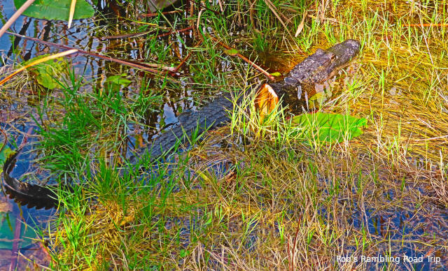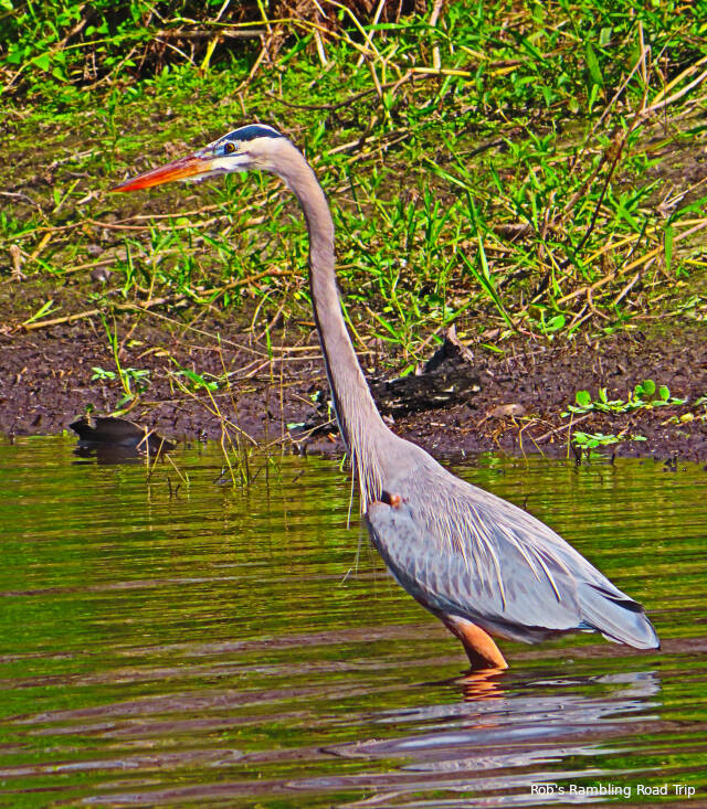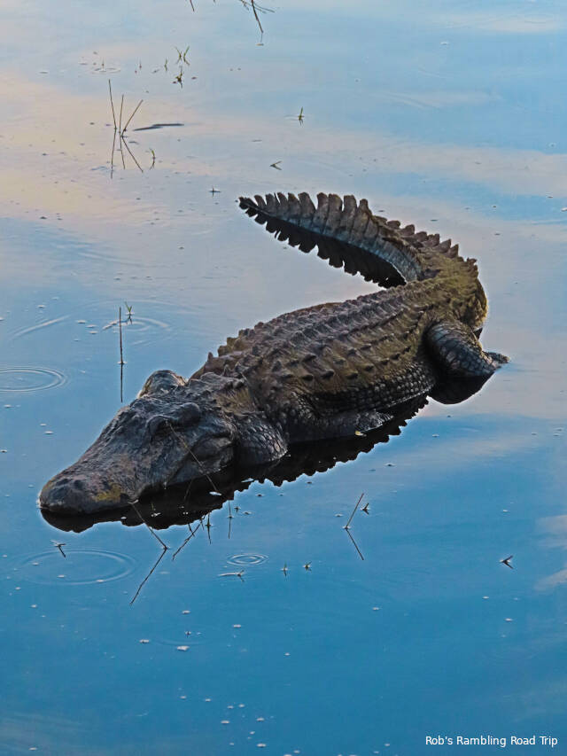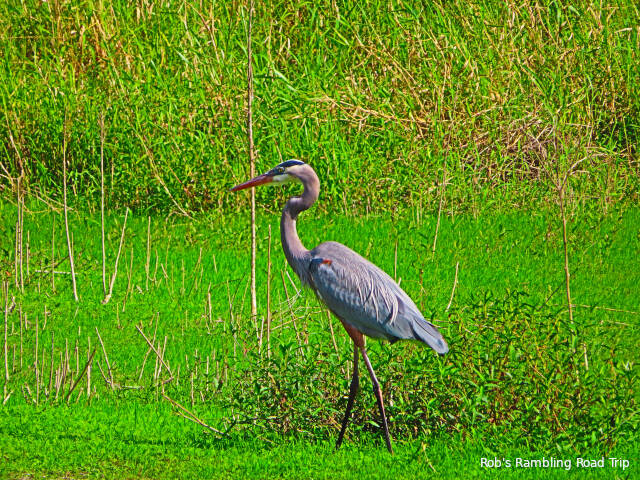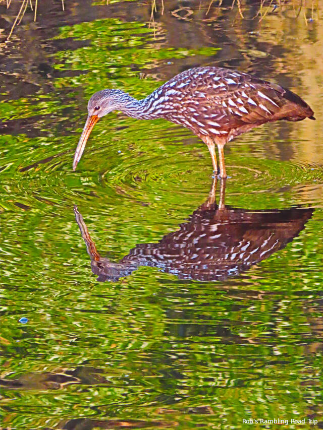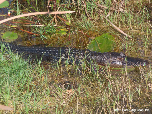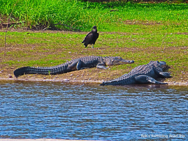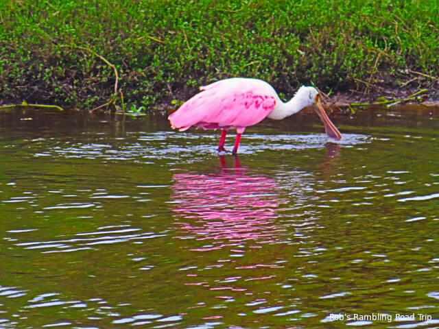 Before and after my repair mission, I searched the State Park for wildlife. The cooler cloudy weather seemed to keep many of the creatures in hiding. Very few gators were on the bank, but a few heads were above the surface of the water. Many of the birds seemed to be hiding out from the wind and chill of the day. I could see many more white, pink and gray specs in the distant trees than I saw out on the river bank. I still managed to take a few pictures of the birds I saw.