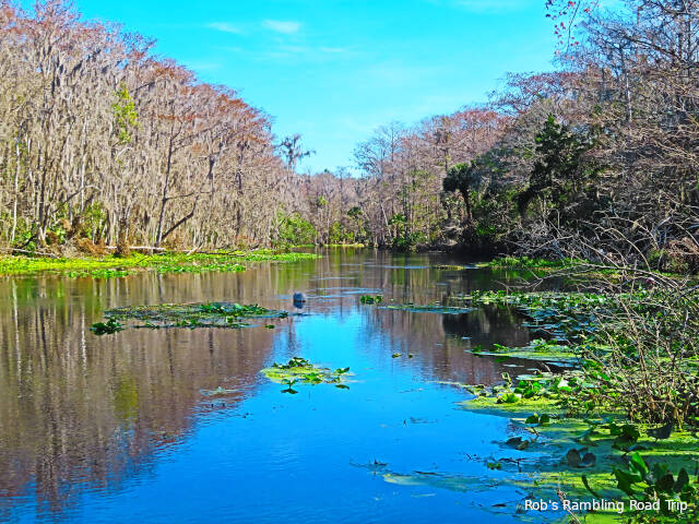 Like most Florida State Parks there are a number of hiking trails to explore. I took the River trail to the Silver River twice today. With the distance from my campsite to the trail head included the river is over a mile away. The trail reaches the river at a bend two miles from the headwaters at the famous Silver Springs. This morning I sat on a bench enjoying the tranquility of the river until an armada of kayaks came around the bend heading downriver. They choose to stop and take a break right where I was sitting. The chaos of landing and securing sixteen kayaks was too much for me. I headed back up the trail to my RV home.
