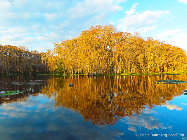 Today’s focus was on settling in at Silver Springs State Park. This is the kind of campground I like best. The sites are large and well separated by both distance and trees. In the hot weather the trees are a big positive, but in the colder weather they are a bit of a drawback. The shade from the trees kept the sun from helping to warm my RV home this morning. They are also preventing me from getting at satellite TV signal. Even so, I like this campground and this campsite.