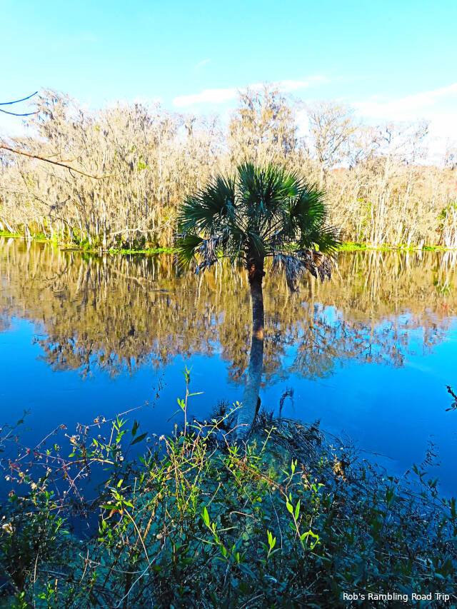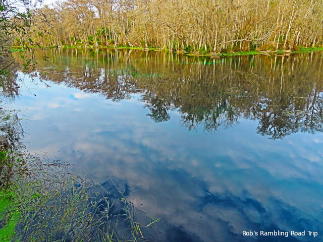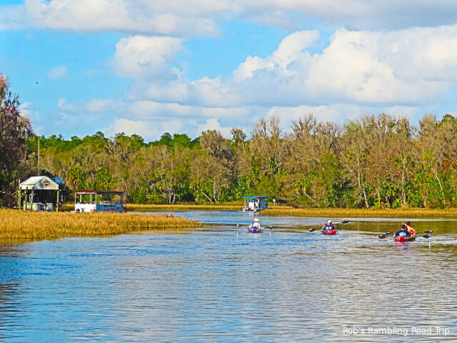 There were a few other hikers on the trails today, but the river was still the most popular form of recreation. An organized paddling excursion has been staying at the state park last night and tonight. They arrived from down river yesterday afternoon in about thirty five high end kayaks. No short sit-on-top boats for these people. Most of the kayaks are fifteen or sixteen feet long with skirtable cockpits. Some of the tents they are spending the night in are at the opposite end of the deluxe spectrum. They’ve seen better days. Today was a day of rest that most of the kayakers took as an opportunity to explore the river and the springs at the headwaters. Tomorrow morning they continue on toward the Gulf of Mexico. The excursion ends on Sunday.