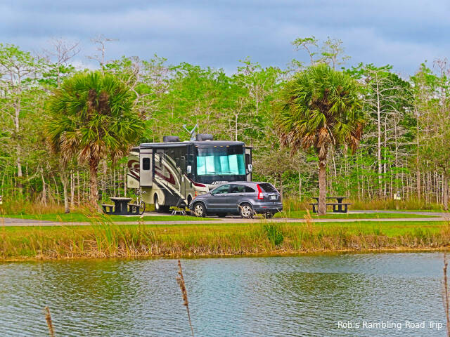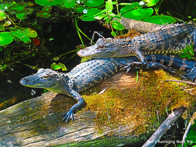 My other long stop was at the Kirby Storter Roadside Park. It was a popular stop today. I met a number of people on the half mile boardwalk trail into the Cypress Strand. Given that this is the dry season, the water level was low. Most of the boardwalk passed over dry grassy ground. Along the tree line portion of the trail there are a lot of Orchids or Bromeliads growing high in the trees. Some are getting ready to blossom. At the end of the trail there is a “gator” hole. It is a deeper portion of the creek that passes through the cypress strand. I spotted several turtles and a few very young alligators. They were under two feet in length.