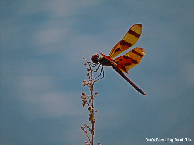 It was a foggy morning. The overnight humidity and still conditions allowed all the moisture from the last couple of days of rain to produced a layer of ground fog that lasted until about 10AM. Under the bright sun the temperature reached the upper eighties, but the afternoon was dominated by clouds. All around the campground dark clouds arrived with some rumbling of thunder and an occasional flash of lightening. Somehow it never rained here at the campground, but the National Weather Service did issue a severe storm warning.