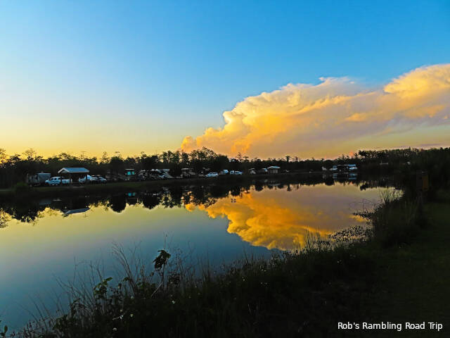 This is my last full day here at the Big Cypress Preserve Midway Campground. I’ll be back again for five night later in the month. Tomorrow I’m traveling to the Flamingo Campground in the Everglades National Park. It is located about fifty miles south of here, but you’d get stuck in the water, grass and muck of the glades if you tried to go straight there. The land route is over one hundred miles long. It is necessary to travel east into the Miami suburbs, south to Homestead and then back to the west through the National Park. Flamingo is really in the middle of nowhere. I know I will not have Verizon Cell service. Hopefully, I’ll have internet access via AT&T.