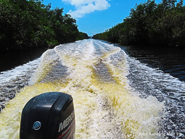The major activity for the day was a ninety minute boat tour into the Everglades back country. They use a relatively small pontoon boat for the task. There are only a total of six passengers with the captain. In my case the other five passengers were a family of five from a Spanish speaking country visiting the United States. The mom and dad spoke reasonable English, but the three kids under five years old barely communicated in any language. They were good kids. All they seemed to care about was the boat ride not the scenery.