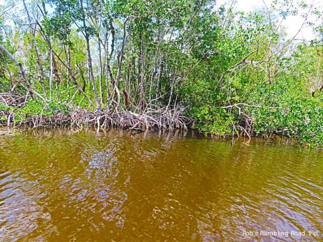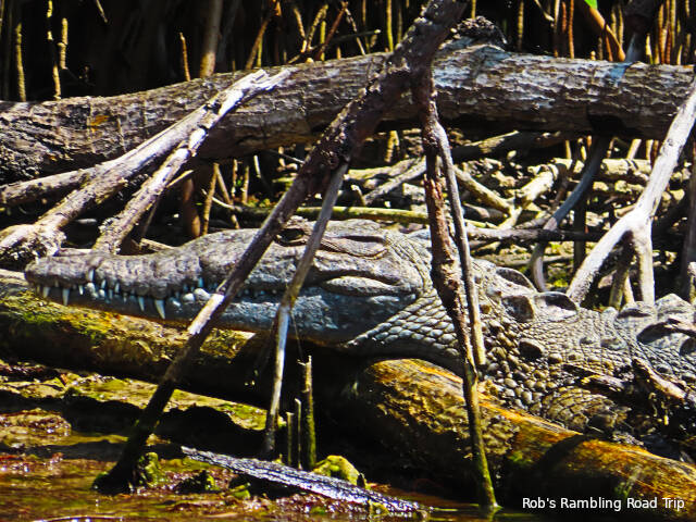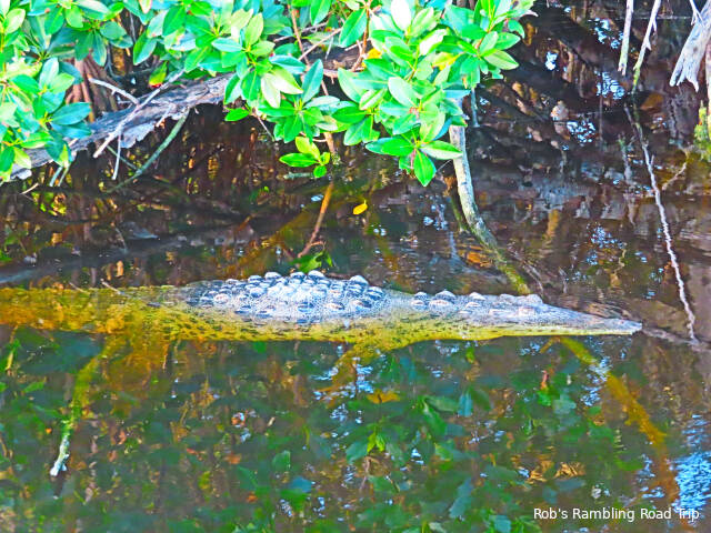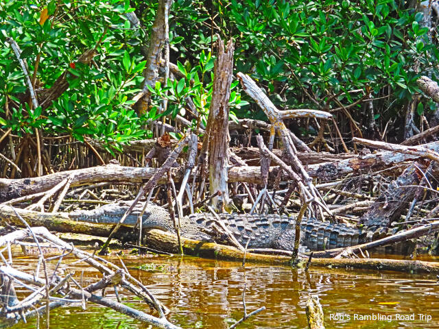 The canal empties into a large body of salt water. The tour boat cut right across Coot Bay to a natural channel lined with more mangroves. We didn’t see any wildlife on this part of the trip. The natural channel empties into Whitewater Bay an even bigger body of water that is open directly to the Gulf of Mexico. The captain took the boat in a big loop in Whitewater Bay and returned to the marina the way we came. On the trip back through the canal we stopped to see the same crocodiles we saw on the way out.