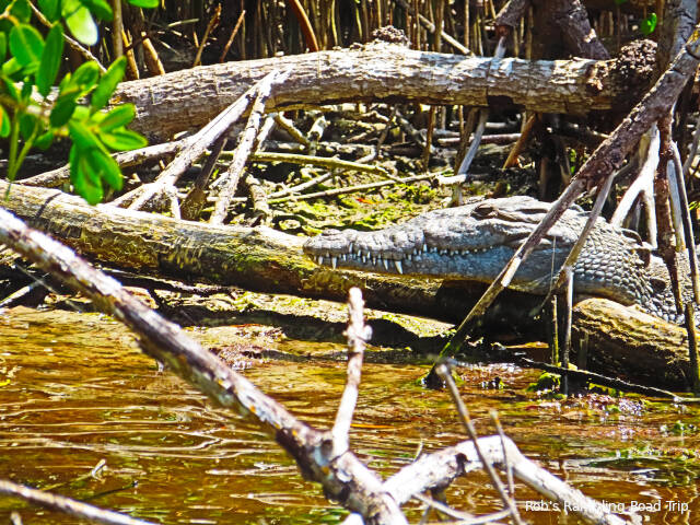 The kids had it right. The scenery and wildlife on the tour were not that remarkable. The tour starts by heading north along the man made dredged canal. This is the area all of the American Crocodiles and manatees can usually be spotted. The boat captain tried to talk up all of the crocodiles that are along the canal, but only managed to find three on the journey. The ones that are out of the water are well back in the mangroves that line the banks. We didn’t see any manatee and only saw a couple of egrets.
