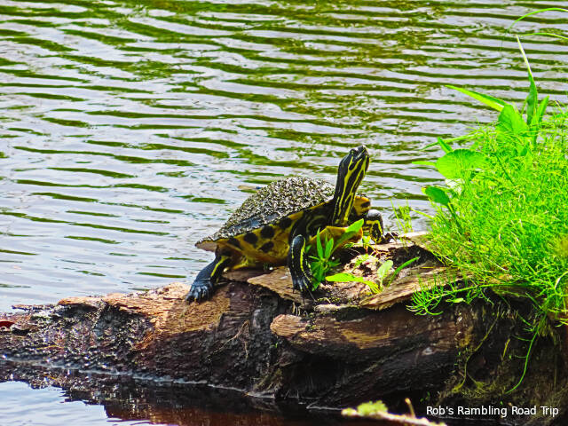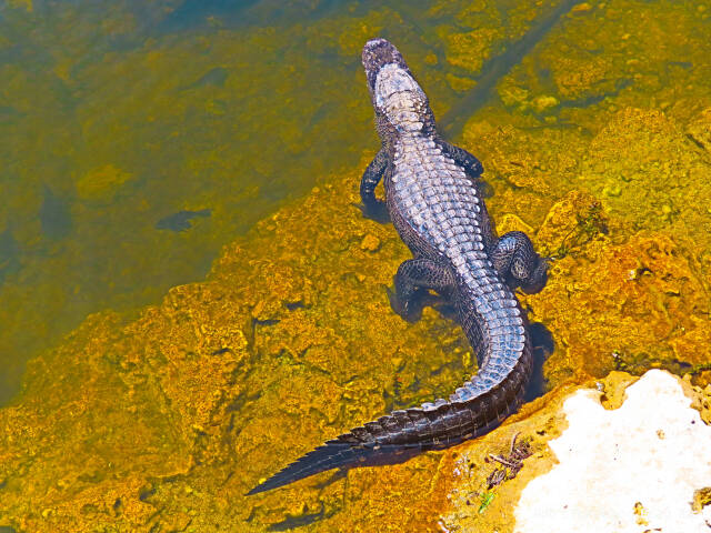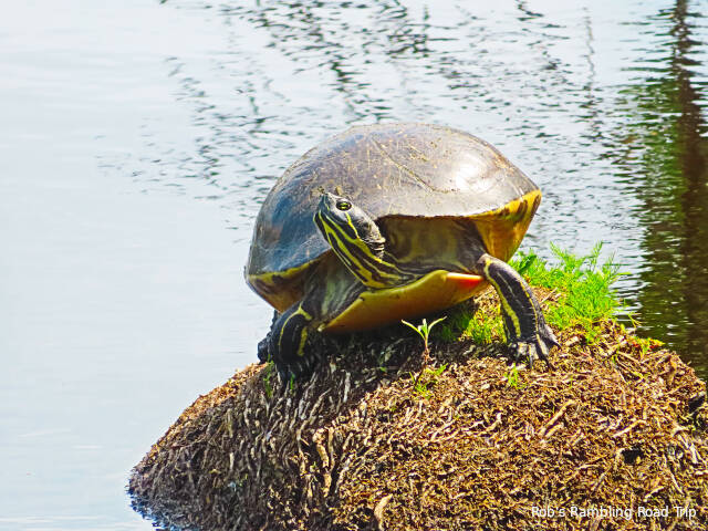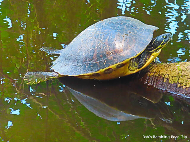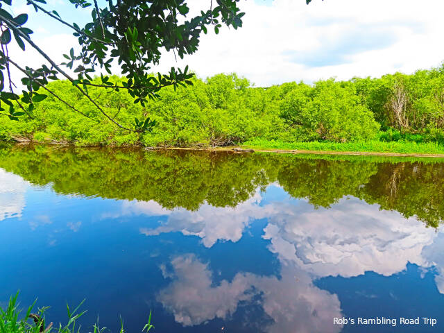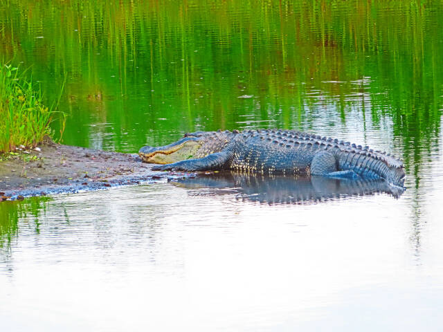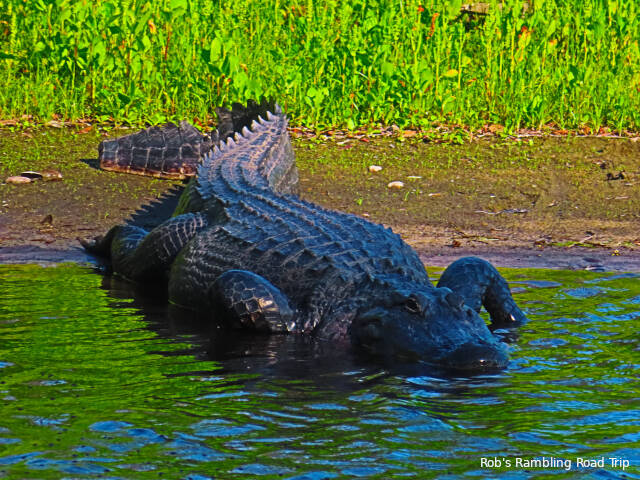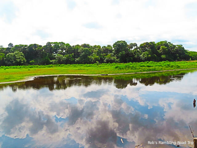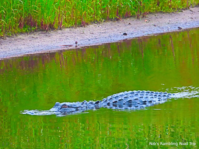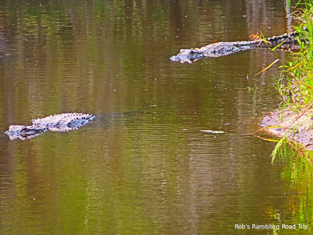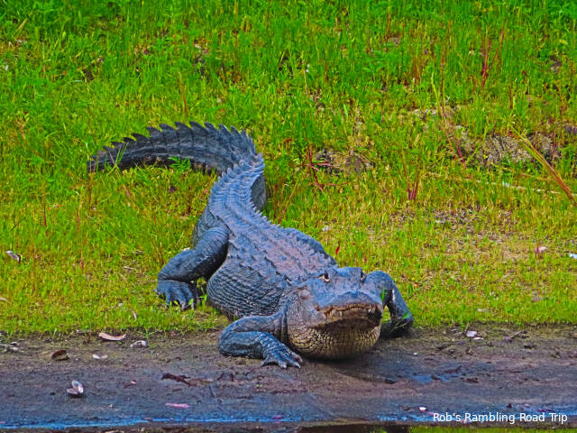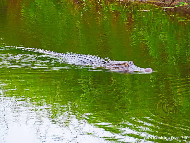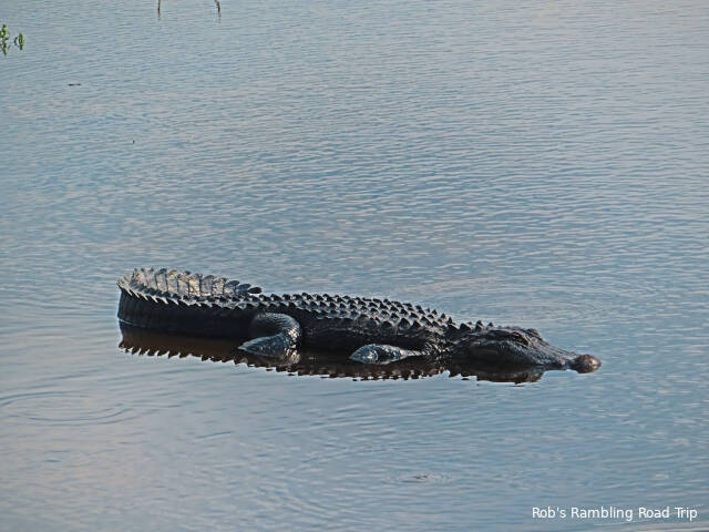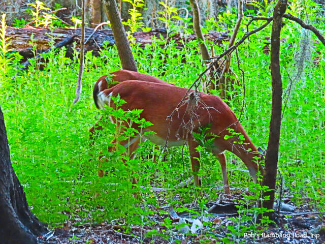 I got in my two long walks along the river today. On my first walk many of the alligators were hiding out in the water. Only a few were taking the sun on the river bank. On my second walk of the day I found a few birds, but most of the alligators were back in the river. The big wildlife observation on my second walk was a group of deer. They were in the woods along the main park road. I was able to walk within twenty feet of them. They took note of my presence, but went right back to grazing.