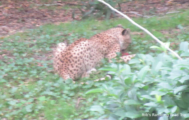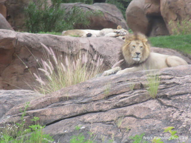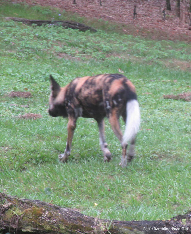 The wait for the safari was listed as thirty minutes. I think it was a little longer. It was worth it. I would have taken a second safari if the wait time wasn’t over an hour the next time I checked. Different animals were active this morning. Last week the Giraffes were out in force, but today I only saw a couple. The female Elephants were also missing from their area. On the other hand the African Painted Dogs were out and the White Rhinos were very active.