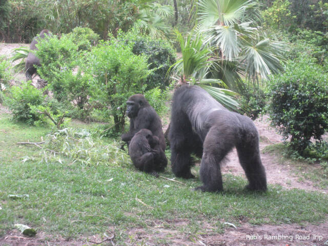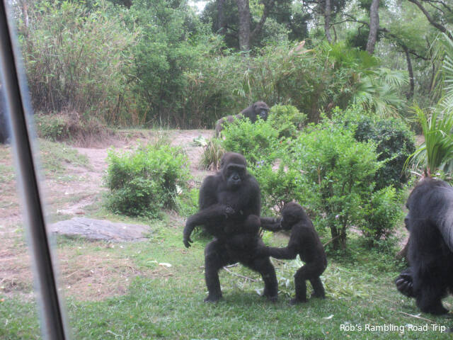 Following the safari I walked the Gorilla trail. They were very active this morning. Some were eating and some were playing. The little ones were getting into it as well. According to one of the cast members today was the first time they have seen the youngest Gorilla climbing on its own.