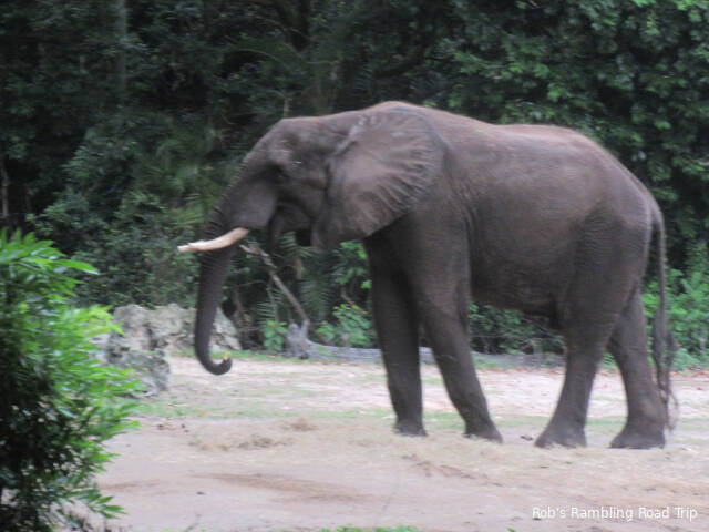 I got an early start to the day. Shortly after 8AM, I was walking into Disney’s Animal Kingdom park to visit the animals. It was just as crowded as it was a week ago. I don’t know what happened to the concept of slow times at the theme parks. Today seemed to be a day for huge family groups all dressed similarly. One group of about twenty people all in green Mickey T-shirts seemed to be blocking my path most of the way from the front of the park to the Safari Ride. The group complete with several strollers and an Electric Convenience Vehicle (ECV) got in line in front of me. They took up at least one whole safari vehicle.