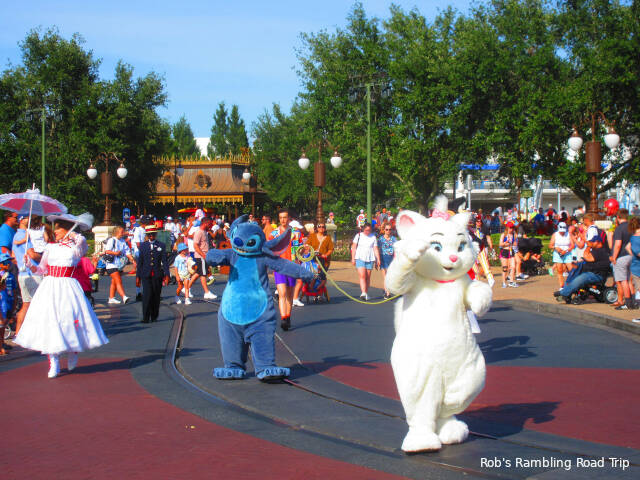 I spent the late afternoon and evening visiting Disney’s Magic Kingdom again. I couldn’t get a park reservation for Magic Kingdom, but I could get another reservation for EPCOT. To visit Magic Kingdom I had to visit EPCOT first and park hop to Magic Kingdom. The afternoon began by parking at the big Ticket and Transportation Center parking lot in Walt Disney World. Instead of going directly to the Magic Kingdom, I took the Monorail to EPCOT. I passed through the ticket checkpoint and wandered around in EPCOT. A little over an hour later I took another Monorail trip back to the Ticket and Transport Center and a third Monorail trip of the day to the Magic Kingdom. It was about 4:30PM when I arrived at town square in the Magic Kingdom.