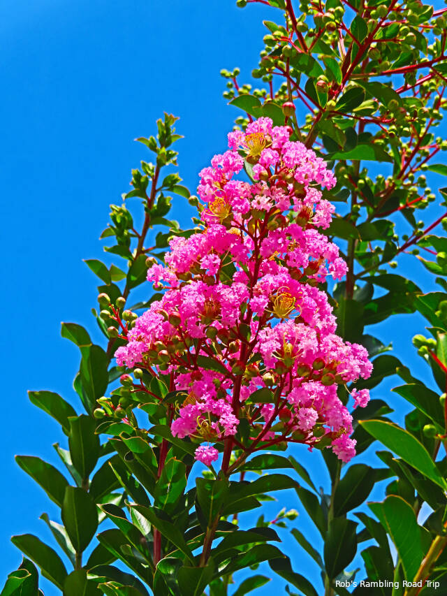 I took my first walk of the day just before noon. As usual I had my camera with me to capture anything interesting. All I found was some a few nice colorful blossoms to photograph. During the heat of the day the animal life seems to be in hiding. They are probably back in the cooler wooded area surrounding the park. My second walk of the day was in the evening. Animals and people were out in the slightly cooler evening.