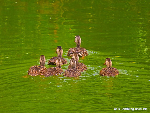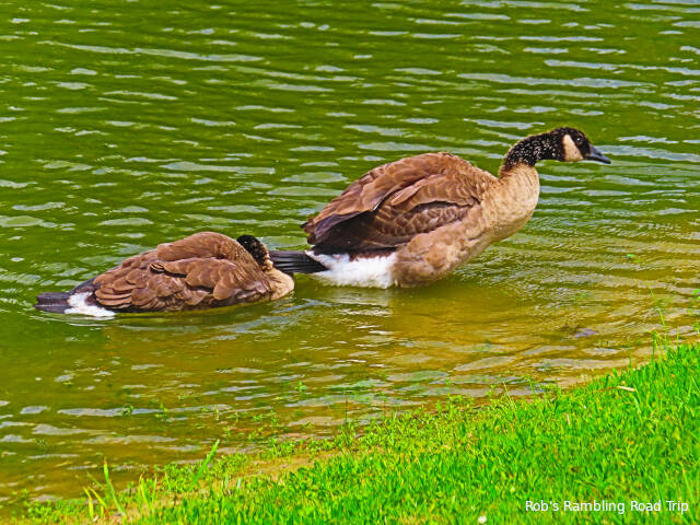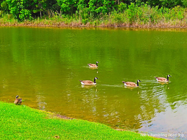 I spent most of the day inside my RV home with the AC keeping things comfortable. Before and between the storms I got in a couple of walks around the RV resort. Without a lot of direct sunlight the ducks and geese were active in and around the retention pond. The park residents were also active. Since many of the people staying here work in the community, the weekend is the time to get things around their RVs accomplished. There were many sounds of maintenance and outdoor work tasks. My neighbor on one side was using the time to remove tar from the front of the motorhome and the neighbor on the other side was engaged in some gardening. He transplanted a number of seedlings into bigger pots.