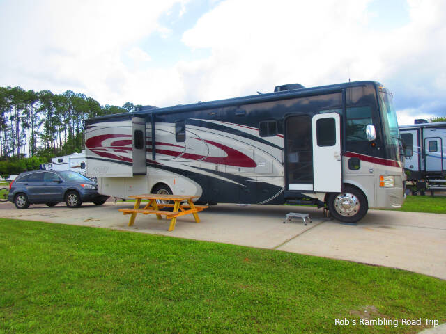 The park doesn’t seem to be filling up for the weekend. Jacksonville is celebrating its Bicentennial this weekend. They are having lots of events downtown tomorrow. I expected the park to fill up with people arriving for the fun. I didn’t see more than two or three RVs arrive this afternoon and evening. If anything the park may have emptied out some for the weekend.