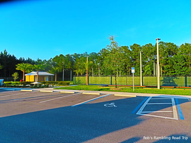 On my visit to this park in June of 2021, work on the recreation area had just started. The land was cleared and leveled with some paving completed. It wasn’t clear what the construction was going to create. In November of last year they were actively working on the area. A restroom building was under construction. Fences around the various courts were getting installed and lights on tall concrete poles were getting installed. When I departed at the end of November it looked like the construction was in the final stages.