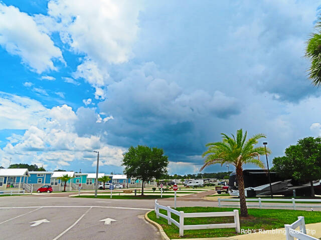 My task for the day was the laundry, but it wasn’t without its share of annoyances. There are two facilities in the park, neither of which are within walking distance carrying a load of laundry. My timing and the arrival of the rain were in sync. It started to rain while I was driving to the laundry facility at the front of the park. By the time I was in the building I was drenched. After I get all of my laundry into two washing machines the next issue pops up. Only one of the two machines I loaded up would take my credit card. Luckily I was able to cram everything into one machine and the dryers were more accommodating. Everything came out fine and I saved two bucks because of their faulty equipment. It rained the whole hour and a half I sat on the porch outside the laundry waiting for the loads to finish. I returned to my RV home after the thunderstorm passed.