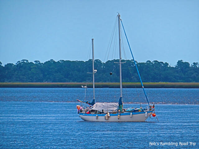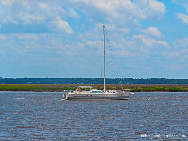 I was along the St Marys River in downtown St Marys while the black cloud was over my RV home. It didn’t rain at all in that area about five miles from the campground. There was a nice breeze along the river. I strolled along the riverfront and sat in the park watching the limited activity on the river. It was near low tide so the small boat traffic was being careful near the shallows along the shore. I was surprised not to see any bird life taking advantage of the areas exposed by the low tide. Strangely, there were no gulls, egrets or ibis around.