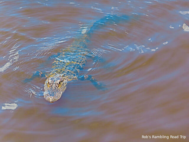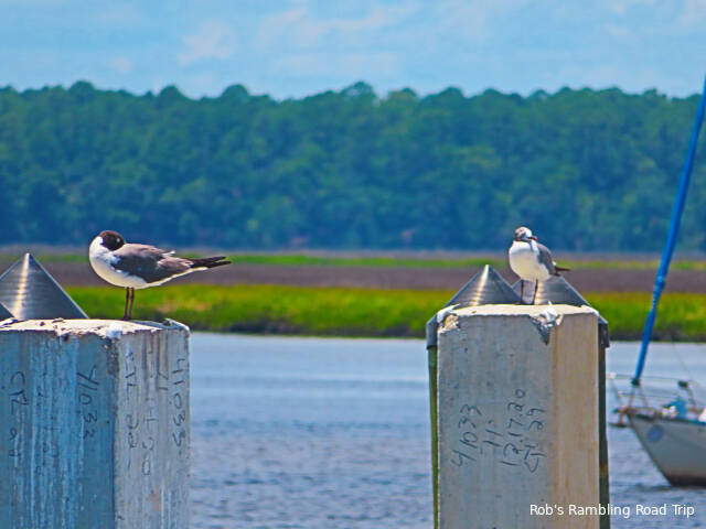 Today was a grocery shopping day, but I went the long way. My first stop was back on the river in downtown St. Marys. There was more wildlife around today. There were seagulls on the piers and a confused juvenile alligator in the river near the boat launching area. Alligators do not usually live in the brackish water of a tidal zone river. It was getting a lot of attention from the people trying to fish for crabs. From the gator’s perspective the crabs the people were trying to catch were the center of attention.
