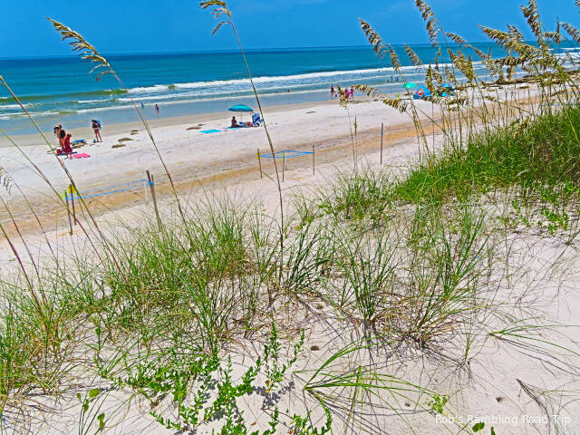 Further south along the coast I stopped at a beach just south of Marine Land. There were many areas of sand blocked off with sticks and tape. The enclosures are intended to protect areas with sea turtle eggs. All of the beach goers had to avoid the area between the beach and the dune with the marked off areas.