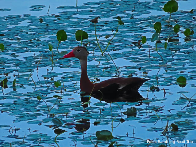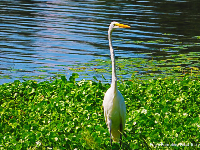 For exercise today, I walked around the retention pond that the campground labels as a “lake”. There are lots of resident ducks, but they don’t pay any attention to you once they understand you aren’t feeding them. A few vising ducks and an egret or two round out the bird life around the pond.