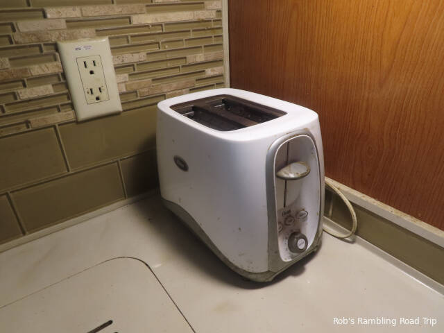 My toaster is stuck to the counter with 3M mounting tape so I don’t have to pack it away before each move. It has been that way since 2018. I use the sliding tray under the toaster and occasionally the vacuum cleaner to empty the crumbs. I’m not sure the last time it was emptied. The acrid smoke called for a more drastic cleaning. I unstuck the toaster from the counter, turned it over and shook the contents into the sink. It looked like half a loaf of bread in crumb form came out. Ok, nearly a cup. Along with the crumbs was a twist tie and a little piece of plastic wrap. I’m assuming the plastic wrap was the source of the acrid smoke. I’ll use the toaster for a couple of days to make sure it’s working before I stick it down again. Worst case is I need to buy a new toaster after a decade or more of use.