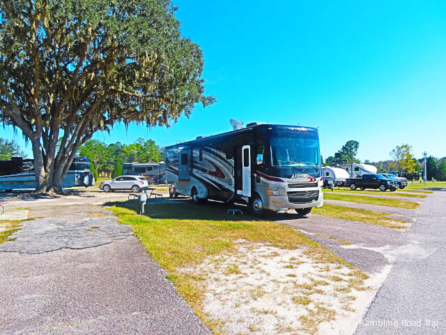 I stopped at the Florida Welcome center for about half an hour to time my arrival at my home for the next six nights to be after 1PM. By 2:30PM I was setup on my site at the Jennings KOA Holiday just south of the Florida Georgia line. This is my fourth visit to this park. My last visit was in the middle of August.