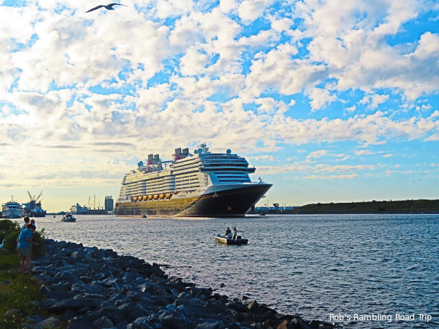 The next ship out was the last of the ships home ported at Port Canaveral. It was Disney’s newest and biggest ship the Wish. It’s only issue with departure was a little bit of a late start. In typical Disney style instead of a simple blast of its horn as it departed port, it serenaded us with Disney song melodies on its horns. I think it went a little overboard with half a dozen or more different tunes. Everything from “It’s a Small World” to “Beauty and the Beast”.