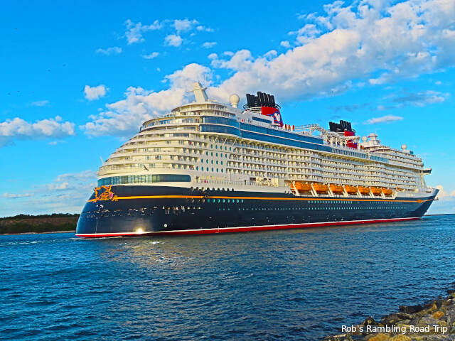 I wonder if those Disney tunes start to annoy the ship’s passengers. You know, like that Disney ride – “It’s a Small World.” When we took cruises, I always like watching the ship come into and out of port. A fun day!