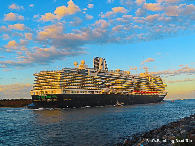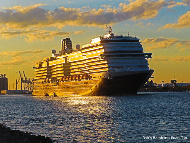 The last ship that I watched depart was the Holland American Nieuw Statendam. It made its way down the inlet with the setting sun in the background. I didn’t wait for the last ship to depart. It was getting dark and cold.