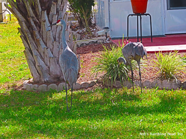 There are not a lot of people walking around in this park, but there are plenty of people out driving around in golf carts. Social gatherings seem to be gatherings of golf carts. Every time I’m out walking I see two or more golf carts pulled up beside each other often in the middle of the road. The occupants have very animated discussions from their respective carts. There is a Halloween golf cart parade scheduled for Saturday night. The golf cart really seems to be the center of the social scene at this RV park. I feel a little odd walking around. The ducks and Sandhill Cranes are the only other creatures out walking around.