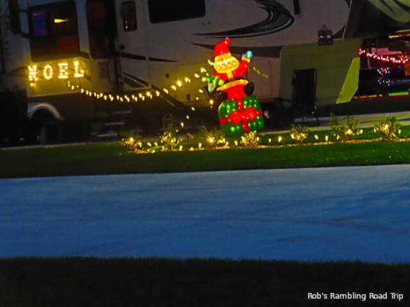 It was a very slow Saturday. I did a few chores around my RV home and generally relaxed most of the day. The TV tuner got a good exercise as it change the channel from one sporting event to another with a Christmas movie or two thrown in for good measure. I also got some exercise with a couple of walks around the RV resort. It is a little more lively today than it was during the week.