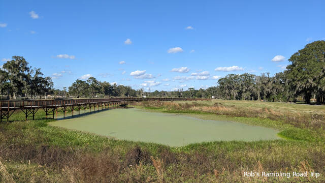 Traffic was a nightmare today. I made the mistake of getting close to the shopping areas and thought I’d never get through the area. Eventually I got back into the area of my RV resort. I stopped at the Ocala Wetlands Recharge park for another walk around the reclamation ponds. It was a refreshing walk. The birds were a little less numerous today. I only saw two or three heron. I think one bird was following me from one area of the park to another.