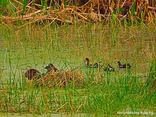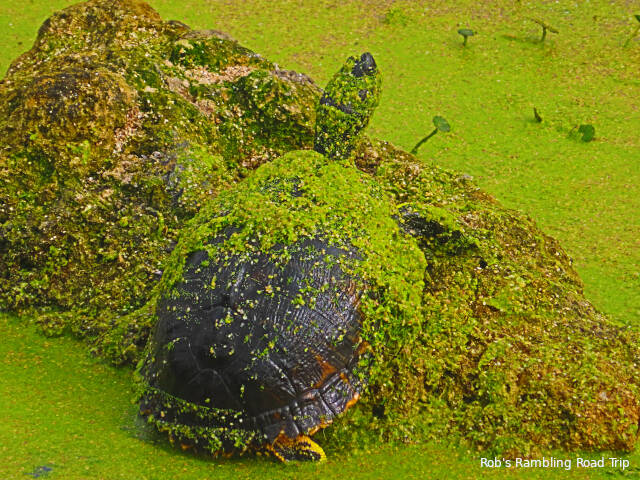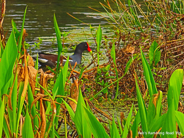 There was quite a bit of wind today. The smaller water birds were staying in the grass and reeds for shelter. Often you could hear them, but not see them. The wind also kept the green surface slime clear in some areas of the ponds. For some reason the birds and turtles don’t seem to like the clear areas.