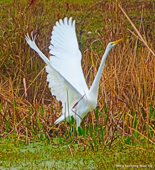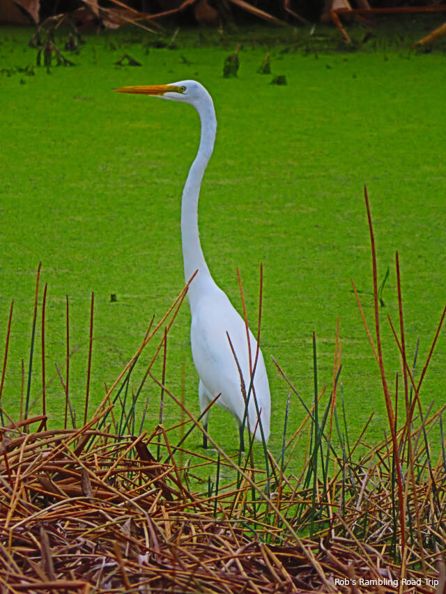 During the early afternoon I ventured out to the Ocala Wetland Recharge Park again. There were more cars than usual in the parking lot, but I saw very few people out in the park. Today was a Great Egret viewing day. There were at least four on the sides of the ponds as I walked the trails. These birds were not accustom to people. I couldn’t get very close without them taking to the air to gain distance from an identified threat.
