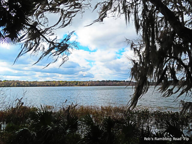 The cool weather had an impact on my activity today. I had intended to drive into Gainesville on a grocery run, but stayed at home instead. It turned into another two hike day, but I needed to bundle up a little more than usual. In the woods of the campground and along the trail the wind doesn’t reach the ground. It is clearly present in the tree tops. They are waving back and forth along with a howling sound. In the open, near Lake Wauberg, the wind is at ground level and very uncomfortable. There were very few people enjoying the day use area of the trails today.
