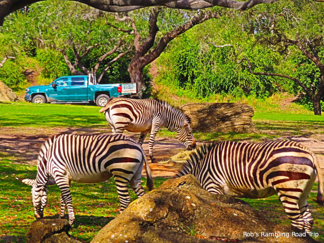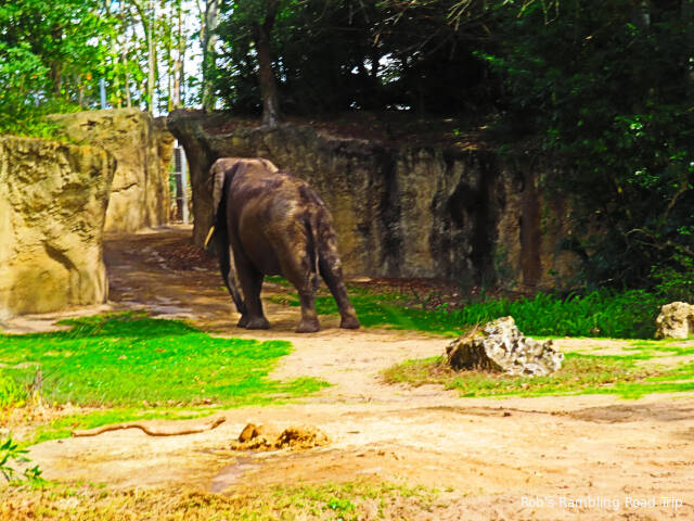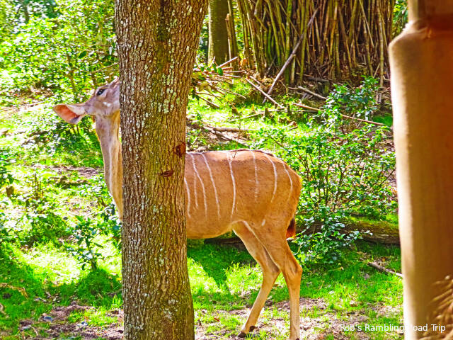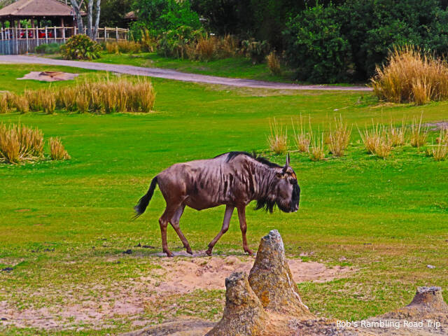 When the wait time for the safari ride got below sixty minutes I got in line. It was moving right along. I thought it would be much less than the posted wait, but then the dreaded message came over the loudspeaker. There were animals on the trail delaying the safari. The animals have the right of way over the ride trucks. All they can do is wait. So, the line stopped moving. It probably stopped for close to half an hour. Once it began to move again, the Lightening Lane for people that paid extra for a shorter line, got priority over the general line. Overall by the time I got off the ride it had been almost two hours from the time I entered the queue. The good thing is there were plenty of animals to see.