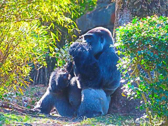 Other wait times this morning were long. I walked the various wildlife trails and toured most of the areas of the park. The male gorillas were very active, but the family units including the babies were all hiding in the shade. On the other trail the tiger was in the shade by a tree well away from the viewing windows. It really wasn’t the best day for animal sightings. The trails around the tree of life were also closed so Disney could do some maintenance on the cement tree.