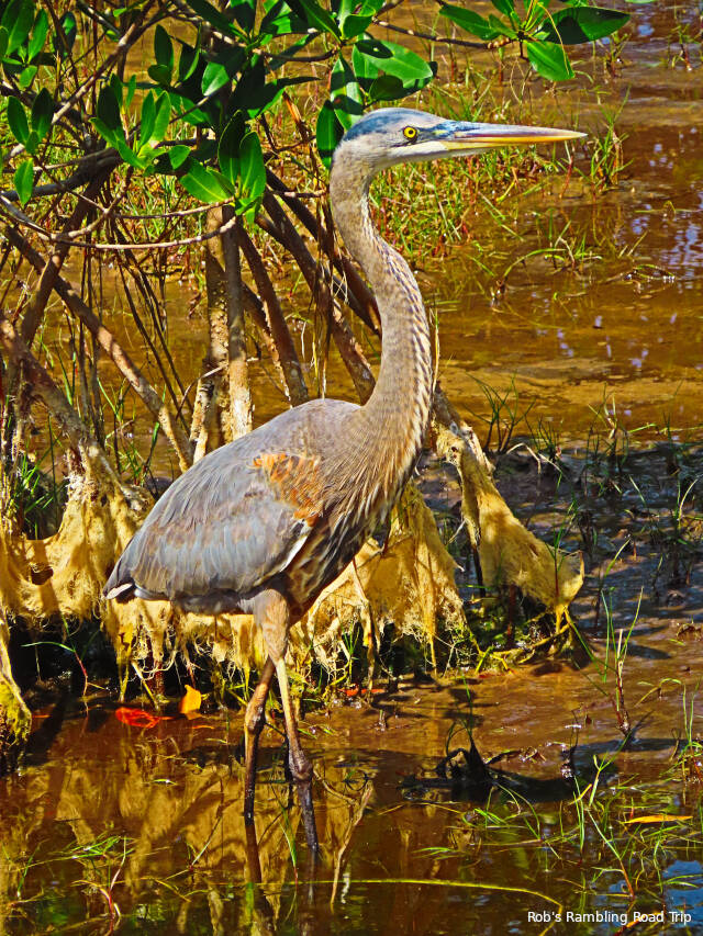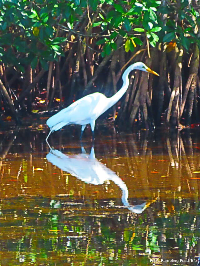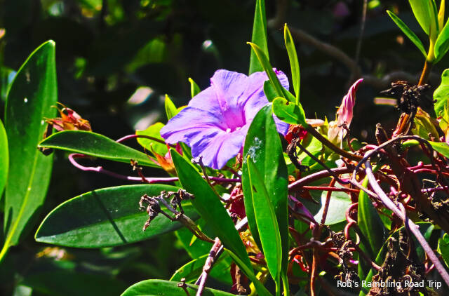 I split the day between catching up on chores and a little touring. The morning was for chores and the afternoon for touring. I drove along the Tamiami trail to the main Big Cypress National Preserve Visitors center. Unlike the Oasis visitors center near the Midway campground I was at last week, this visitors center doesn’t have alligators. Instead it has a boardwalk along the mangrove lined marsh where you can often see manatees swimming. There weren’t any today. The best I saw today were a few purple blossoms.