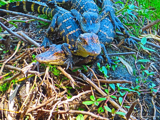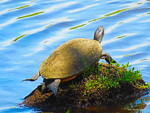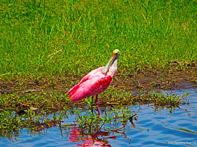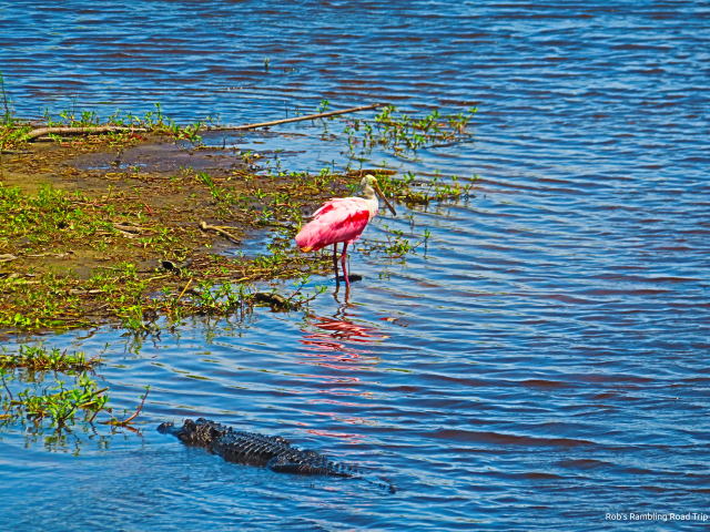 I walked up the park road to the bridge over the Myakka River after breakfast this morning. The water birds were out today. I saw several Blue Herons, a trio of Egrets and a solo Rosetta Spoonbill. In addition to stopping at the bridge for bird and alligator viewing, I walked out and back on the trail along the far side of the river. A few more alligators, turtles and birds were in the river along the trail.