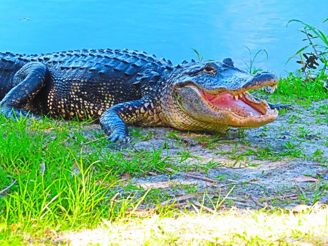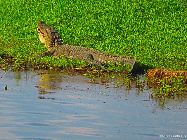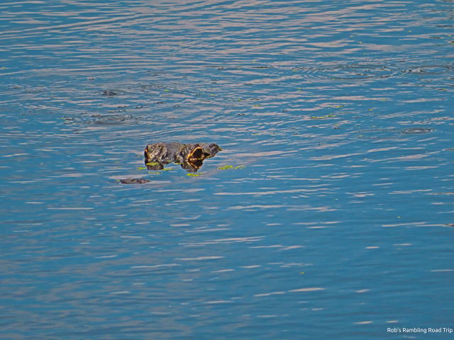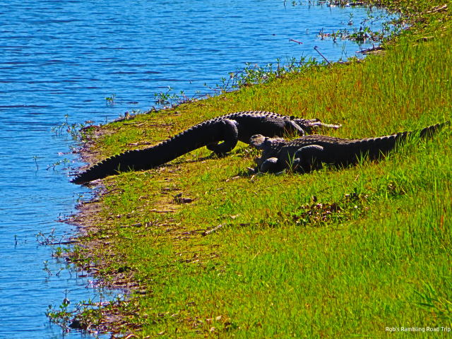 There some good views of the river along the path. It comes complete with alligators and birds. Once again I saw many limpkins. They continue to be all over the park. The one species of bird I wasn’t expecting was a turkey. On the far bank of the river one lone turkey strutted his (I think) stuff. Still the alligators were the stars. They were in the water and along the bank. This area seems to be home to a few bigger gators along with plenty of medium sized ones.