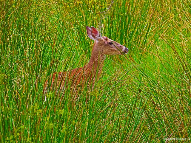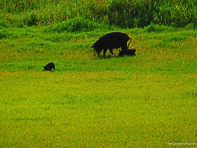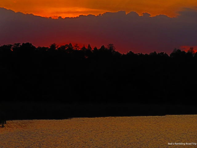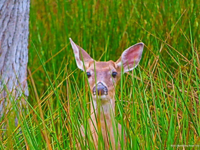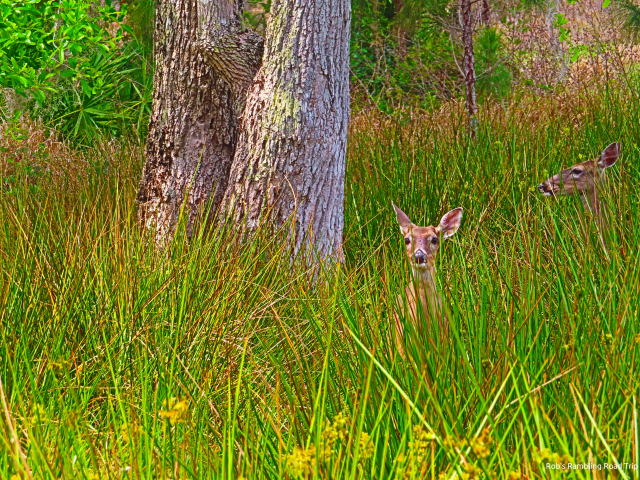 My second walk of the day was near sunset. I walked up to the bridge over the Myakka River. On the way there, I spotted a deer in an open area back from the road. This was the same area I saw several deer last week. At the bridge a wild hog with its collection of little ones was drawing all the attention once again. Tonight a young alligator actually came out of the water quickly toward the piglets. They collectively squeaked and ran to mom. The alligator quickly got about ten feet from the water, but the little ones were twenty or more feet away by then. The alligators need luck, surprise and I suspect darkness to have any real success. There is evidence that they do have success from time to time.