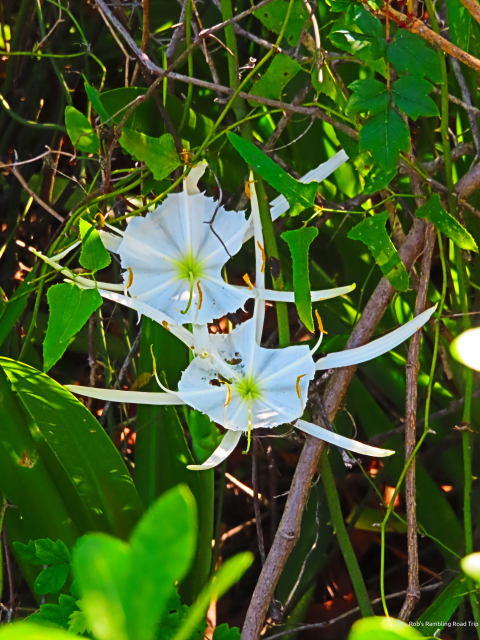 I was back in my standard daily pattern of two walks separated by a period of time to do chores around my RV home. My first walk was along the river bank going down river. The early part of journey is along well defined trails. Once you walk beyond the day use area of the park the path gets more wild. It isn’t an official groomed trail, but it gets plenty of traffic. The trees and debris from the hurricane and other high water periods have not been professionally cleared. Other hikers have cleared a lot of the small stuff. A path is clearly defined, but it is necessary to climb over some trees and take wide detours around others. It is still worth it.