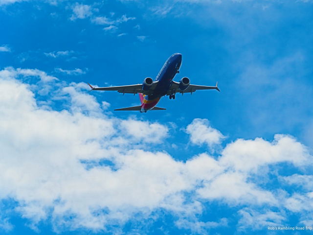 It rained off and on overnight and most of the morning. Sometimes it was heavy and other times not much more than a mist. The problem was it really wasn’t outside activity weather. In the early afternoon it looked like it was drying up. I tested the conditions with a walk around the front part of the RV park. I stayed dry and a little blue sky even appeared above one of the low flying airplanes. After a pause at my RV home for some lunch, I started my walk toward the back part of the park. I didn’t get very far. A new rain shower chased me back into my RV home for another hour or so. This evening there was actually a little sun, before darkness arrived, but there is more rain forecast overnight.