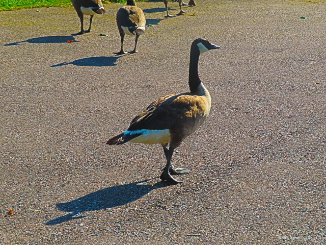This morning I walked around the RV park and found a few changes over the three days I was gone. First a couple of my neighbors were gone. There is a whole area of open sites between my site and the front of the park now. I suspect there will be new occupants as time goes by. Perhaps because of the open sites, or more likely because of random roaming, the Canadian Geese have moved from the retention pond at the back of the park to the bigger pond at the front of the park. Walking now becomes an exercise of avoiding their cylindrical green calling cards on the grass, campsite pads and roads.