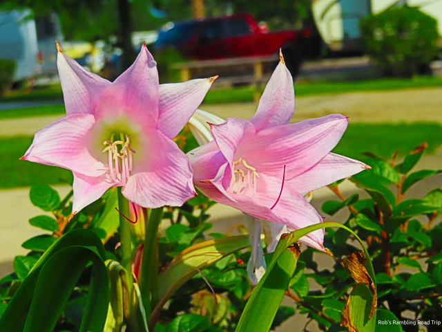 At the RV park, I only got in one walk today. It was an evening walk when the sun had reached a lower angle. I didn’t get moving fast enough this morning for a walk before the sun was at its peak. There has been some change in the occupancy of the park. A few long term residents have departed and others seem to be slowly getting ready to move on. It isn’t anything specific, but you just get the idea that they are starting to organize things for a change. A couple of new trailers have also arrived without occupants. The units are brought in by a transport company and setup. The occupants arrive later.